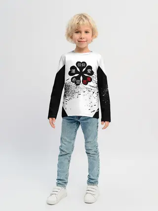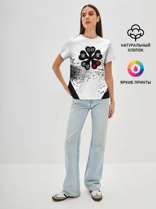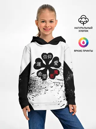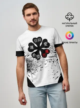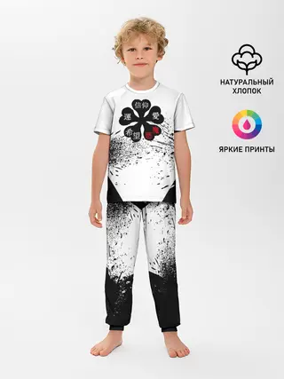 Детская базовая футболка / Чёрный клевер с иероглифами