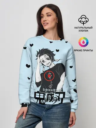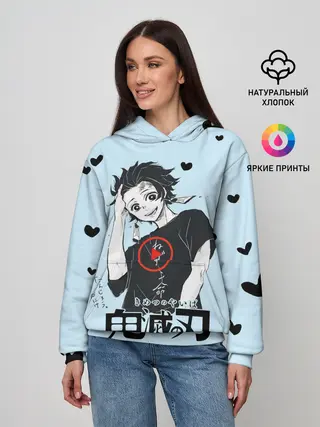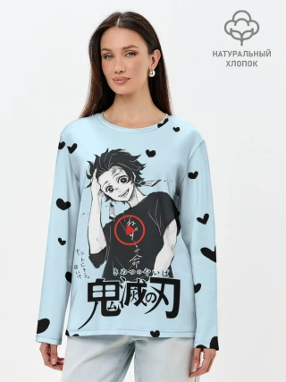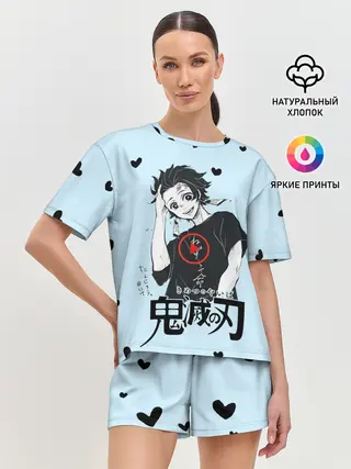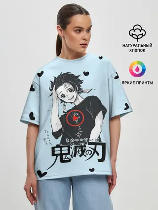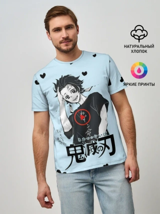 Детская базовая футболка / Танджиро Камадо черные сердечки