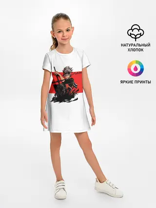 Детская базовая футболка / Чёрный клевер Аста красная полоса