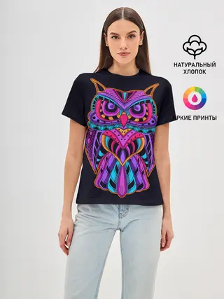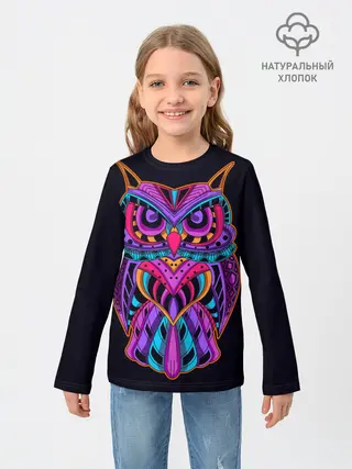 Детская базовая футболка / Неоновая ястребиная сова