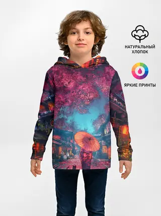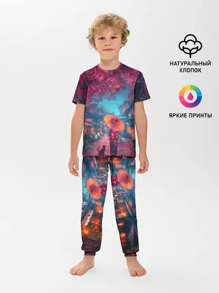 Детская базовая футболка / Фестиваль сакуры кот и гейша