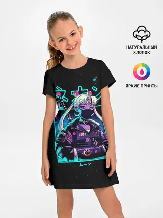Детская базовая футболка / Сейлор Мун неон