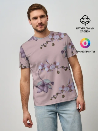 Детская базовая футболка / Розовые орхидеи на розовом фоне