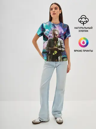Футболка классная, все понравилось. Принт качественный. При стирке 40градусов даже не полиняла. Единственное, тянется сильно. Как бы не растянулась после нескольких стирок.
