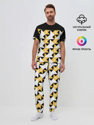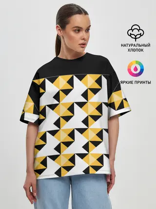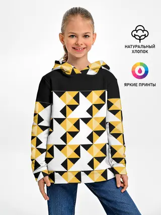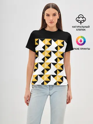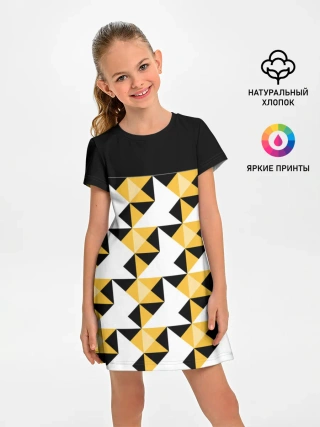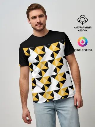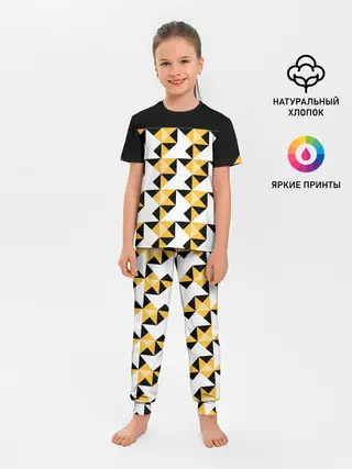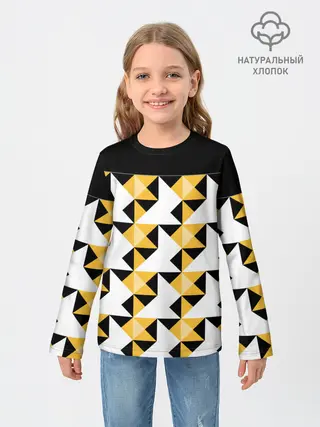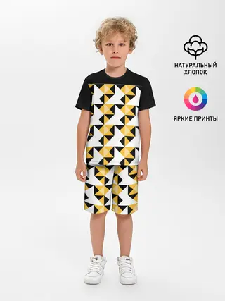 Детская базовая футболка / Черно-желтый геометрический