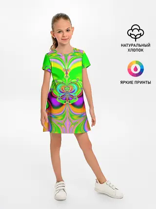 Детская базовая футболка / КИСЛОТНЫЙ ФРАКТАЛ ГЕОМЕТРИЯ