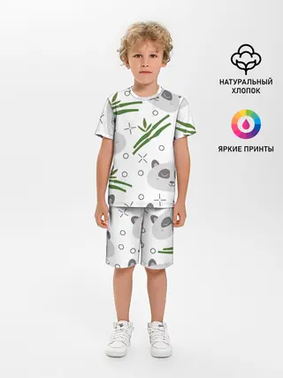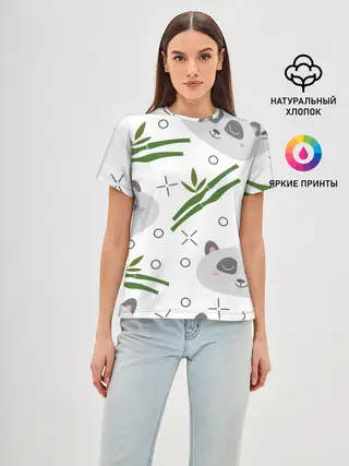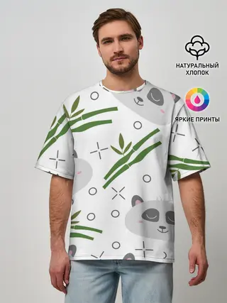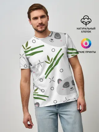Детская базовая футболка / Панда с бамбуком