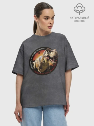 Женская футболка оверсайз хлопок / Динозавры_3D_русский