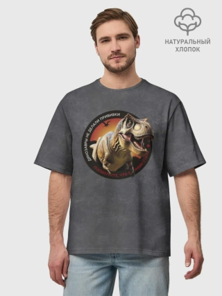 Мужская футболка оверсайз хлопок / Динозавры_3D_русский