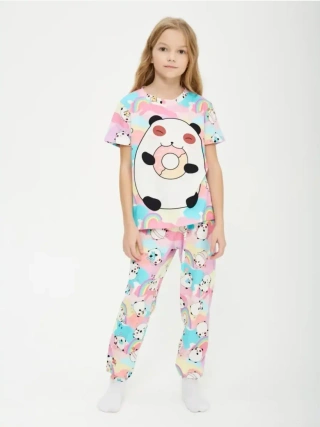 Детская пижама с брюками хлопок / P001_PandaPinkBlue