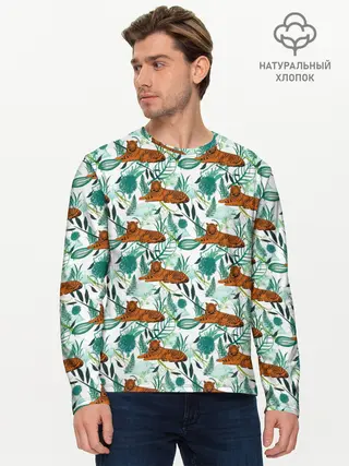 Детская базовая футболка / Цветы и Тигр Паттерн