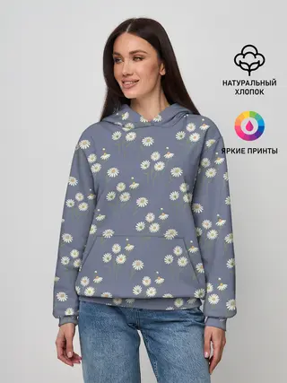 Детское худи / Ромашки на сером паттерн