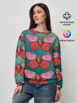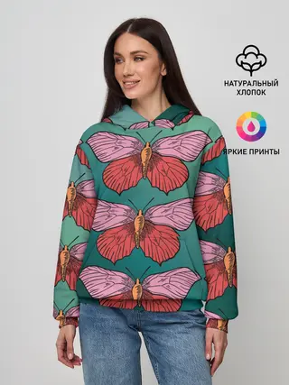 Детское худи / Зеленый принт с бабочками :)