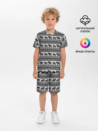 Детское худи / Черно-белый узор слоны