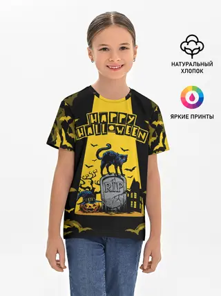 Детское худи / КОТ НА КЛАДБИЩЕ | ХЕЛЛОУИН