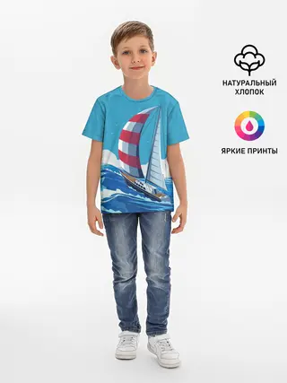 Детское худи / ПАРУСНИК В МОРЕ | ЛЮБЛЮ МОРЕ