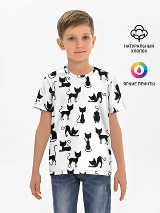 Детское худи / КОШКИ БЕЛОЕ НА ЧЕРНОМ