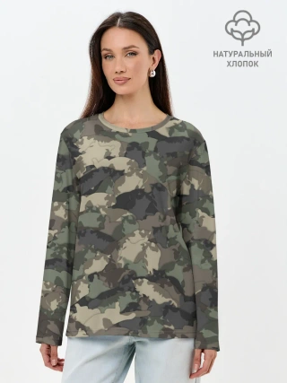 Лонгслив женский. Хлопок / Камуфляж с толстыми котами