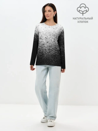 Лонгслив женский. Хлопок / БРЫЗГИ КРАСОК ЧЁРНЫЙ