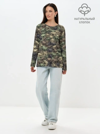 Лонгслив женский. Хлопок / Камуфляж с ленивцами