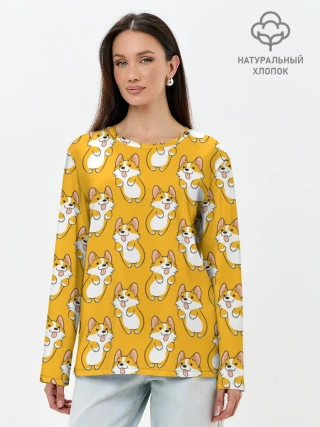 Лонгслив женский. Хлопок / Корги Паттерн 2