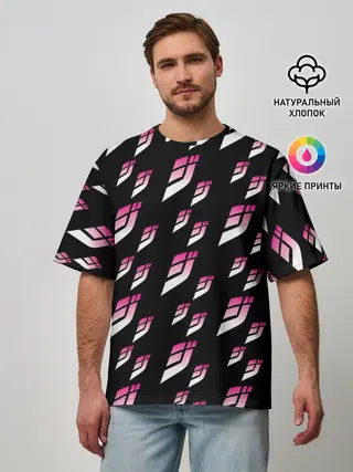 Мужская футболка оверсайз / Джоджо паттерн розовые лого