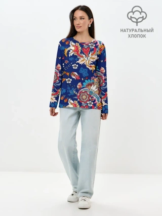 Лонгслив женский. Хлопок / Экзотический орнамент