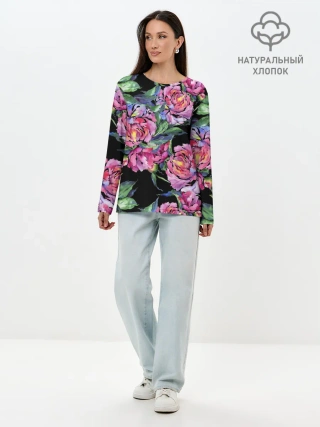 Лонгслив женский. Хлопок / Розовые пионы