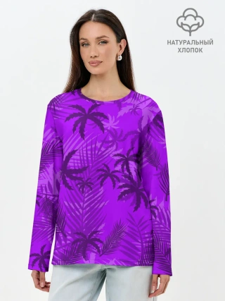 Лонгслив женский. Хлопок / ФИОЛЕТОВЫЕ ПАЛЬМЫ / ТРОПИКИ