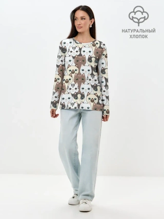 Лонгслив женский. Хлопок / Котики