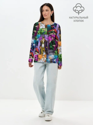 Лонгслив женский. Хлопок / Паттерн джоджо кира спидвагон