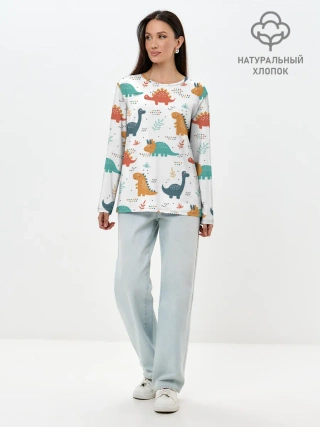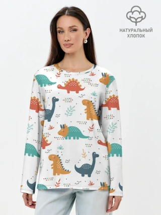 Лонгслив женский. Хлопок / Милые динозавры