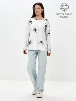 Лонгслив женский. Хлопок / Пауки