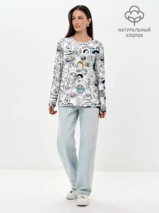 Лонгслив женский. Хлопок / МЕМЫ
