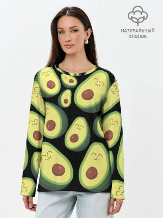 Лонгслив женский. Хлопок / Авокадо паттерн