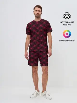 Мужской костюм с шортами / Kimetsu no yaiba красный паттерн