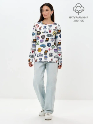 Лонгслив женский. Хлопок / NBA Pattern | НБА Паттерн