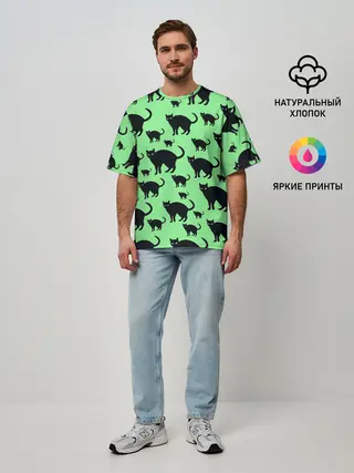 Мужская футболка оверсайз / Кошки черные
