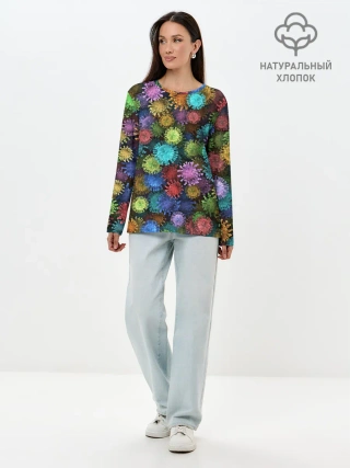 Лонгслив женский. Хлопок / Разноцветные вирусы