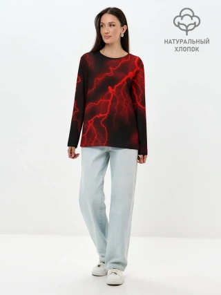 Лонгслив женский. Хлопок / МОЛНИЯ RED NEON