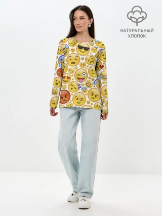 Лонгслив женский. Хлопок / Смайлы.