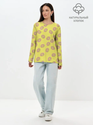 Лонгслив женский. Хлопок / Пончики Донатс.