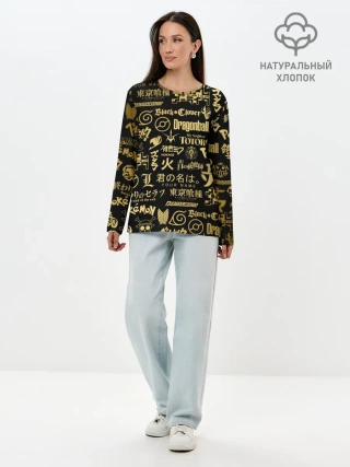 Лонгслив женский. Хлопок / ЛОГОТИПЫ АНИМЕ GOLD