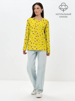 Лонгслив женский. Хлопок / Паттерн Пикачу