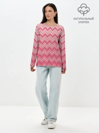Лонгслив женский. Хлопок / узор милые сердца зигзагами