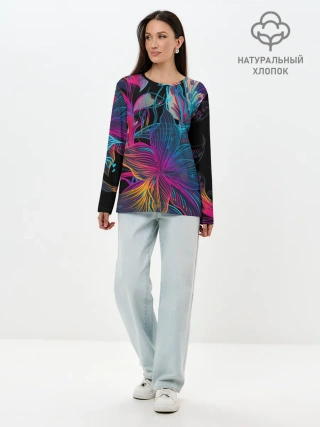 Лонгслив женский. Хлопок / Flowers | Неон