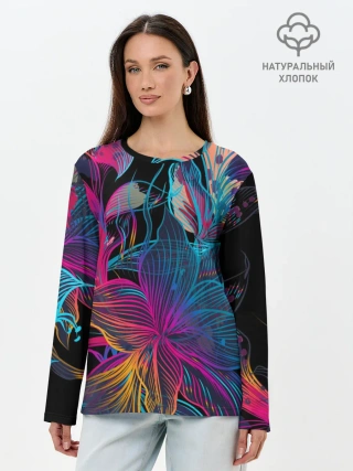 Лонгслив женский. Хлопок / Flowers | Неон