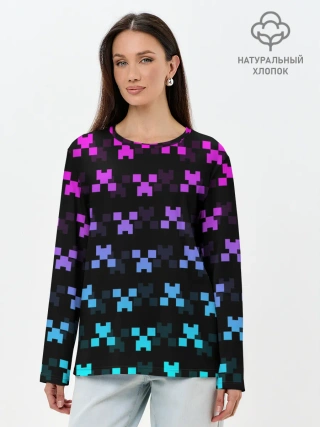 Лонгслив женский. Хлопок / MINECRAFT CREEPER NEON