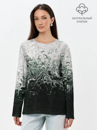 Лонгслив женский. Хлопок / Разводы жидкость абстракция