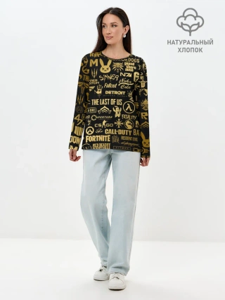 Лонгслив женский. Хлопок / ЛОГОТИПЫ ИГР ЗОЛОТО | GOLDEN